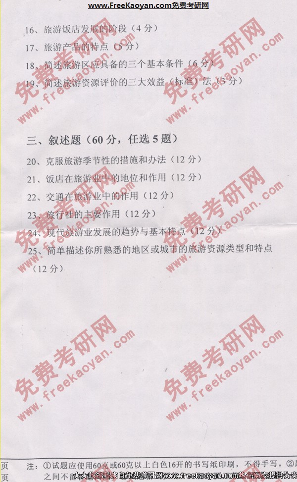 专业课考研经验 本站小编 FreeKaoyan 2018-01-23中国地质大学(武汉)2005年考研真题-旅游区规划与管理