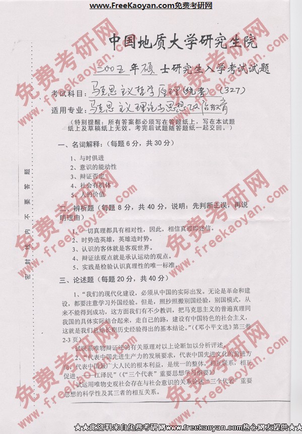 相关话题/考研真题 马克思主义哲学 中国地质大学 原理