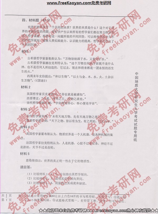 相关话题/考研真题 马克思主义哲学 中国地质大学 原理