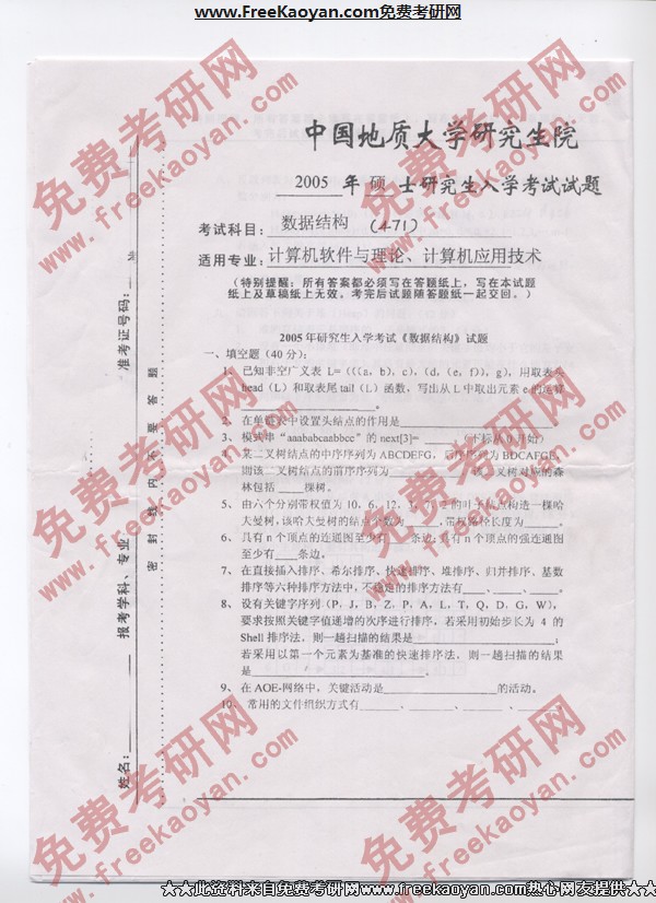 专业课考研经验 本站小编 FreeKaoyan 2018-01-23中国地质大学(武汉)2005年考研真题-普通地质学