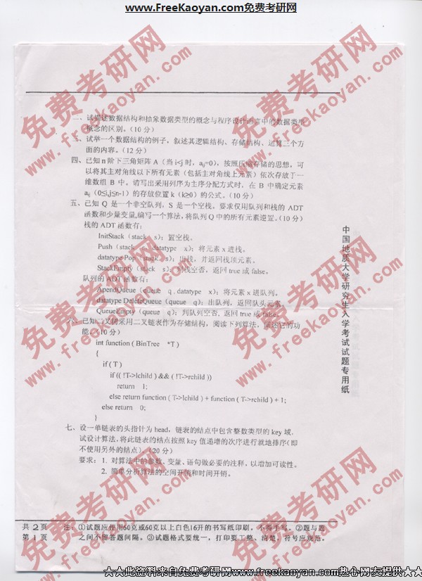 中国地质大学(武汉)2005年考研真题-数据结构(2)