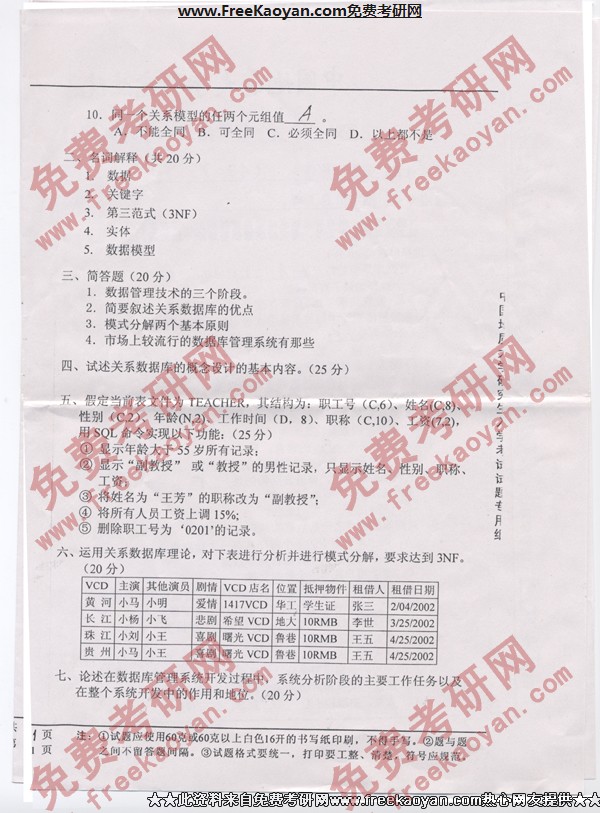 中国地质大学(武汉)2005年考研真题-数据库原理(2)