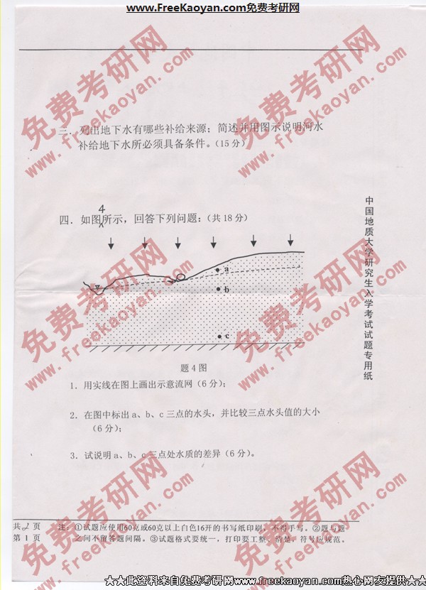 中国地质大学(武汉)2005年考研真题-水文地质学(2)