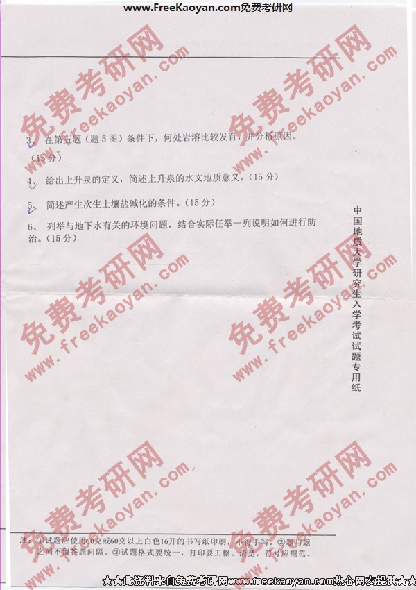 专业课考研经验 本站小编 FreeKaoyan 2018-01-23中国地质大学(武汉)2005年考研真题-普通地质学