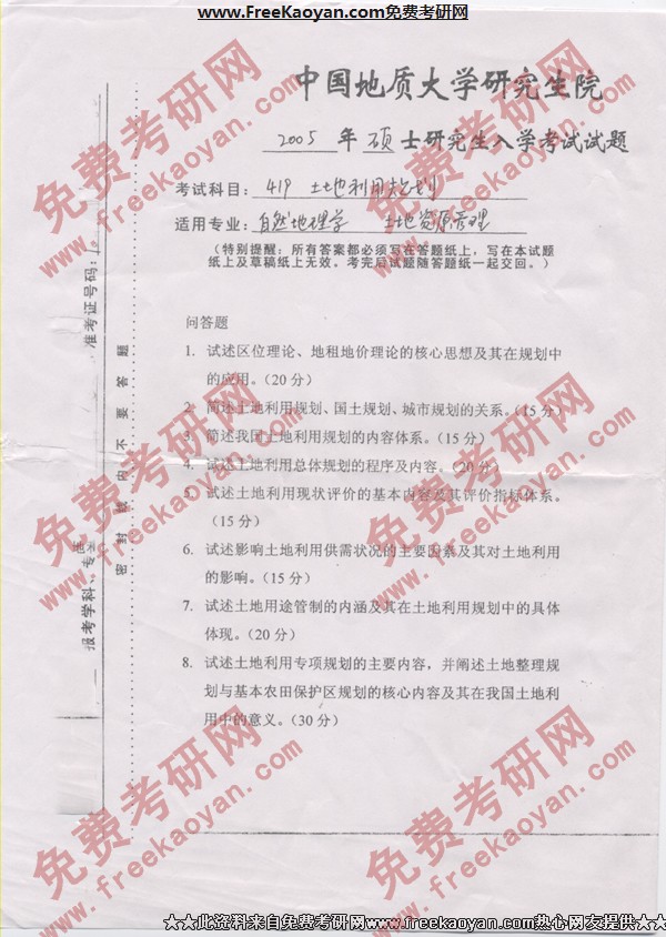 相关话题/考研真题 中国地质大学 规划 土地利用