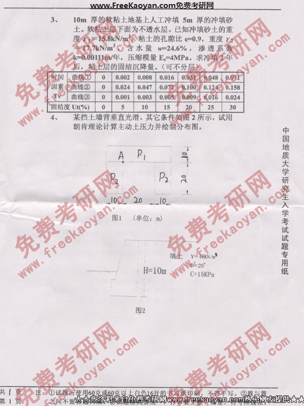 相关话题/中国地质大学 考研真题 土力学