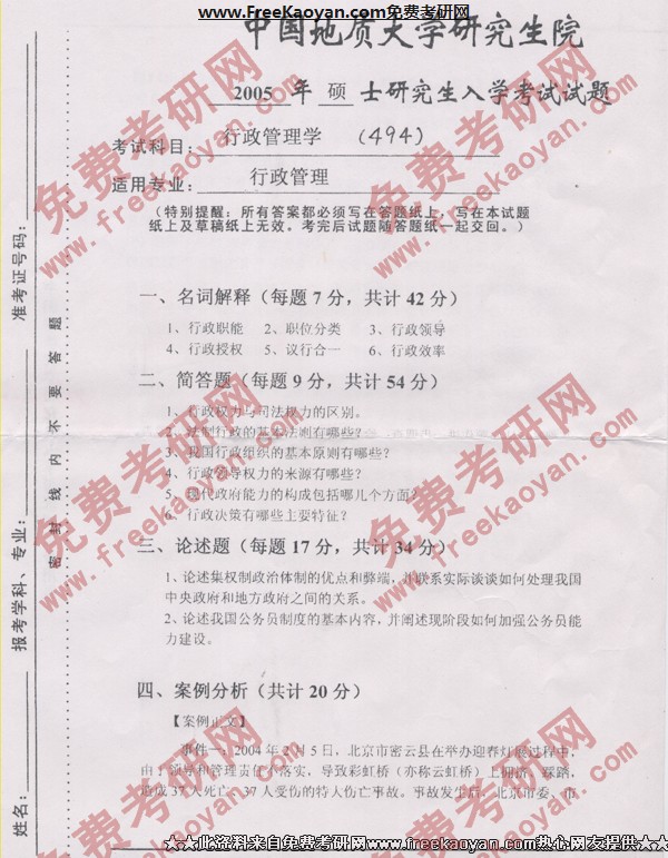 相关话题/中国地质大学 考研真题 行政管理学