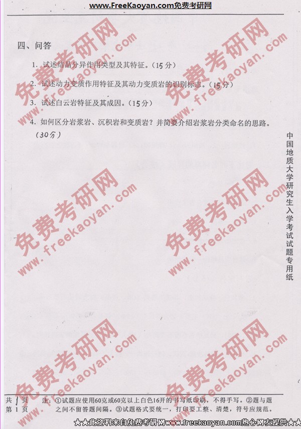中国地质大学(武汉)2005年考研真题-岩石学(2)