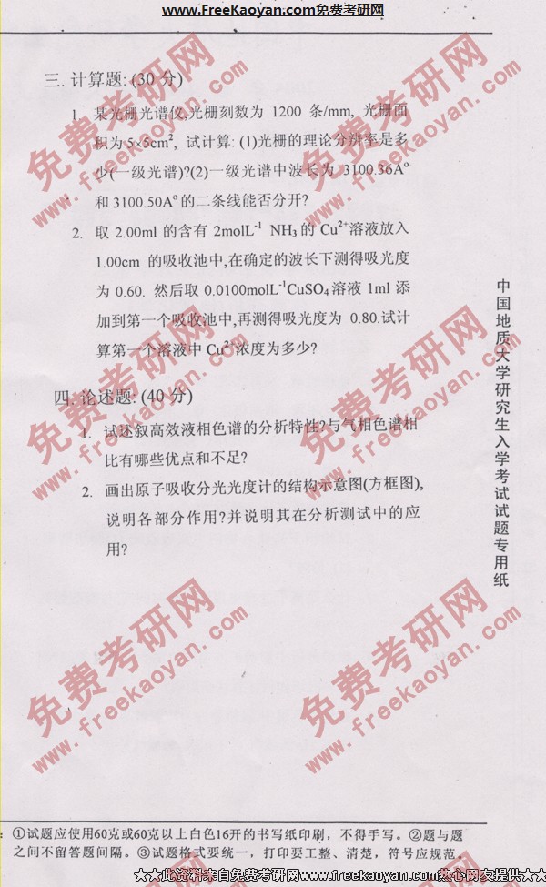 专业课考研经验 本站小编 FreeKaoyan 2018-01-23中国地质大学(武汉)2005年考研真题-物理化学