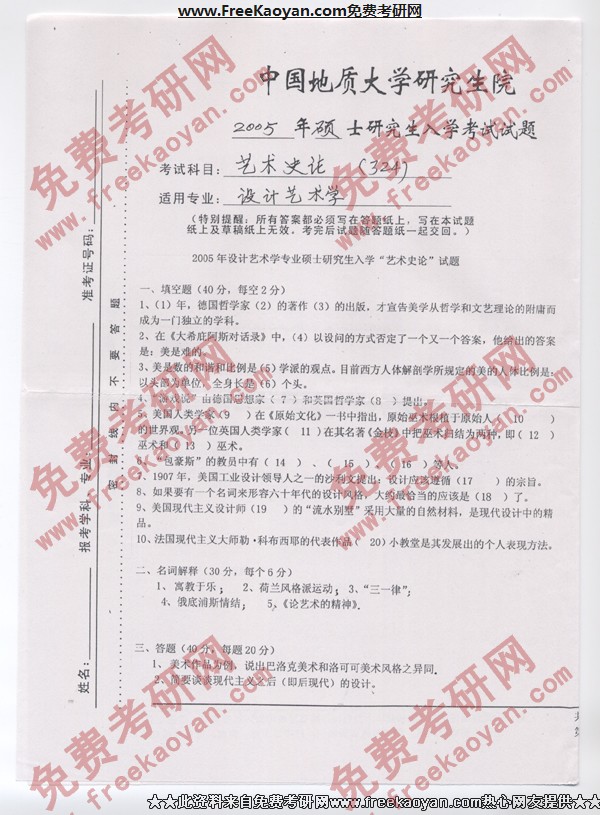 中国地质大学(武汉)2005年考研真题-艺术史论