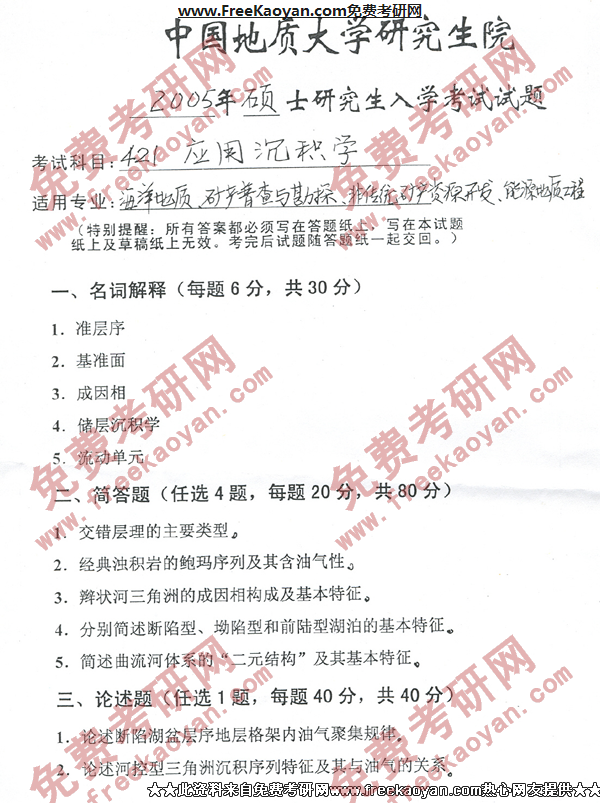 中国地质大学(武汉)2005年考研真题-应用沉积学