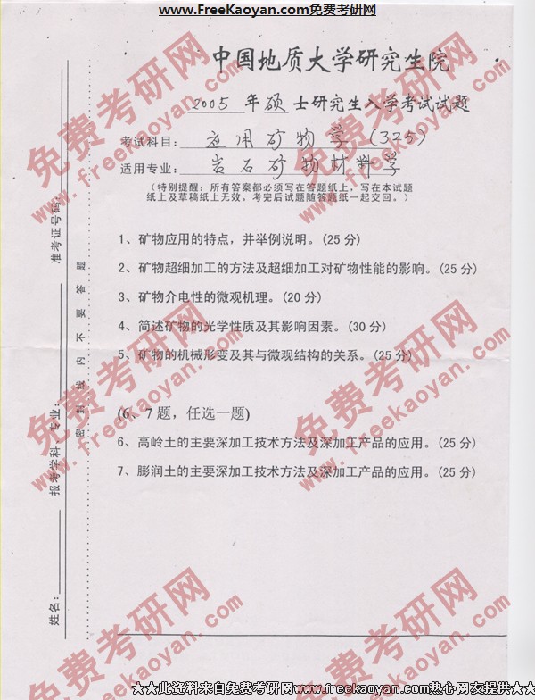 中国地质大学(武汉)2005年考研真题-应用矿物学