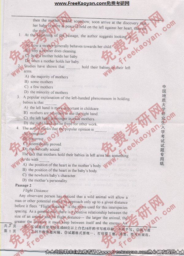 相关话题/考研真题 中国地质大学 综合考试 英语