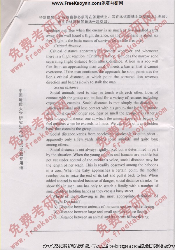 相关话题/考研真题 中国地质大学 综合考试 英语