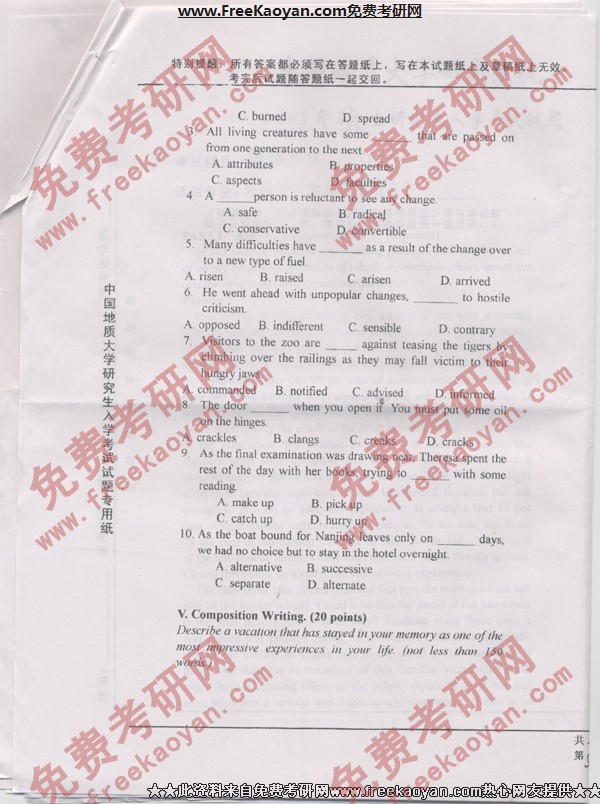 相关话题/考研真题 中国地质大学 综合考试 英语