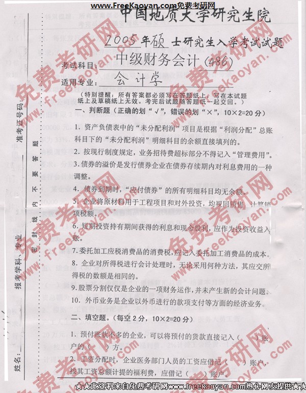 中国地质大学(武汉)2005年考研真题-中级财务会计