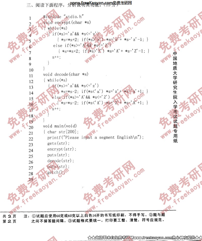 中国地质大学(武汉)2006年考研真题-C语言程序设计(4)