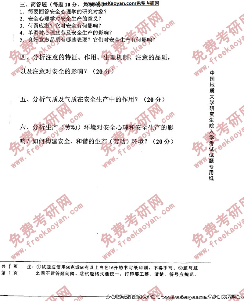 中国地质大学(武汉)2006年考研真题-安全心理学(2)