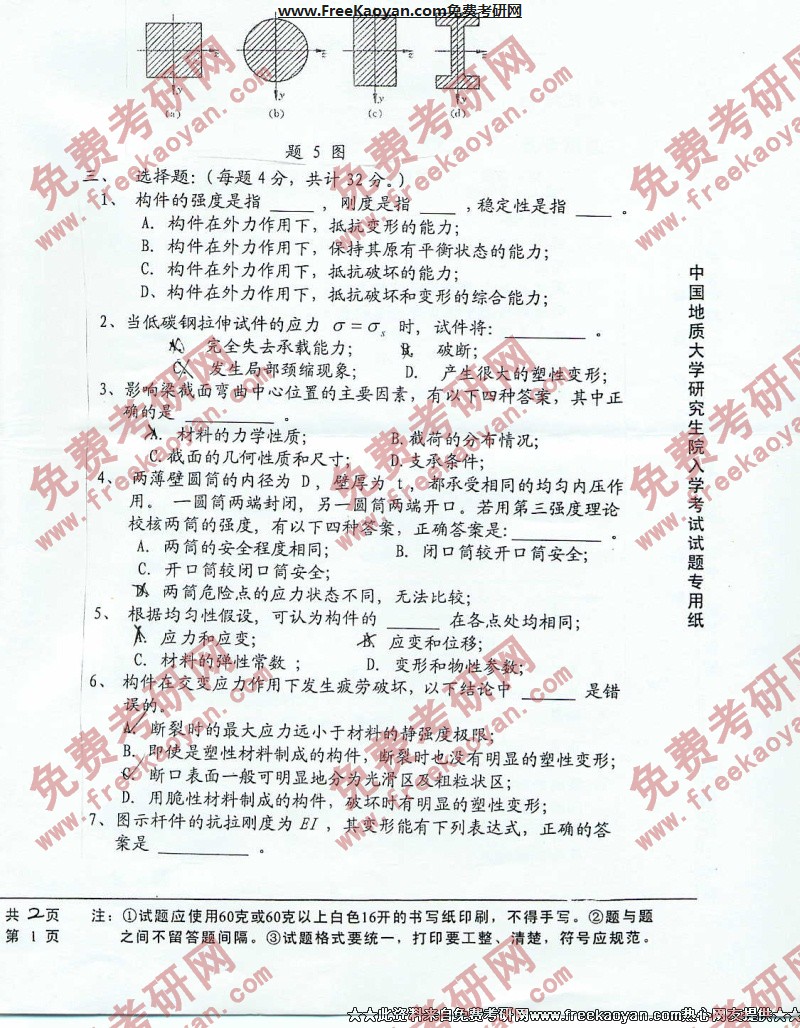 中国地质大学(武汉)2006年考研真题-材料力学(2)