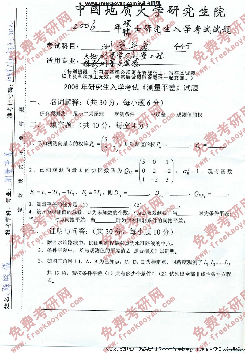 专业课考研经验 本站小编 FreeKaoyan 2018-01-23中国地质大学(武汉)2006年考研真题-安全系统工程