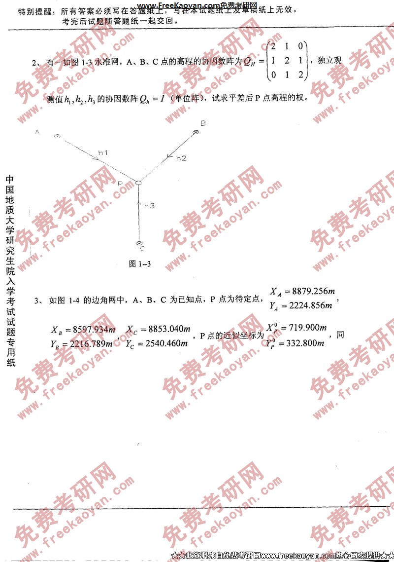 中国地质大学(武汉)2006年考研真题-测量平差(3)