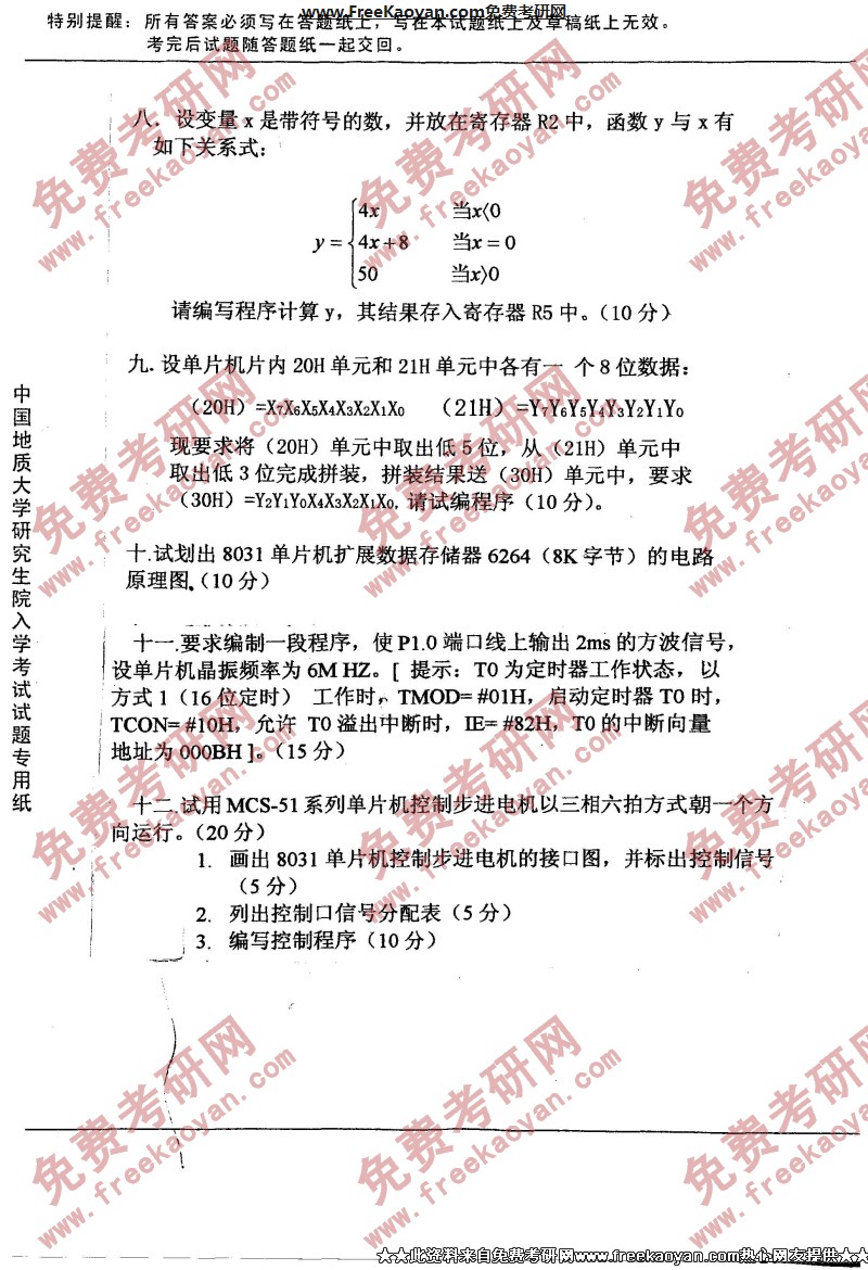 中国地质大学(武汉)2006年考研真题-单片机原理与应用(3)