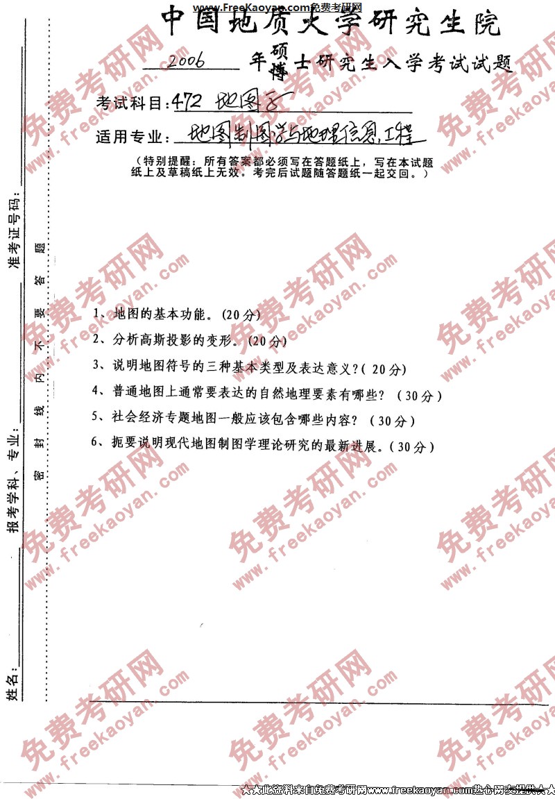 中国地质大学(武汉)2006年考研真题-地理信息系统