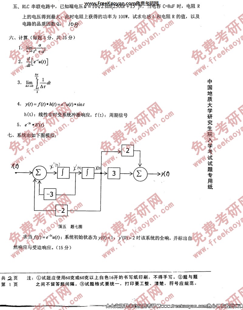 相关话题/考研真题 中国地质大学 信号与系统 电路