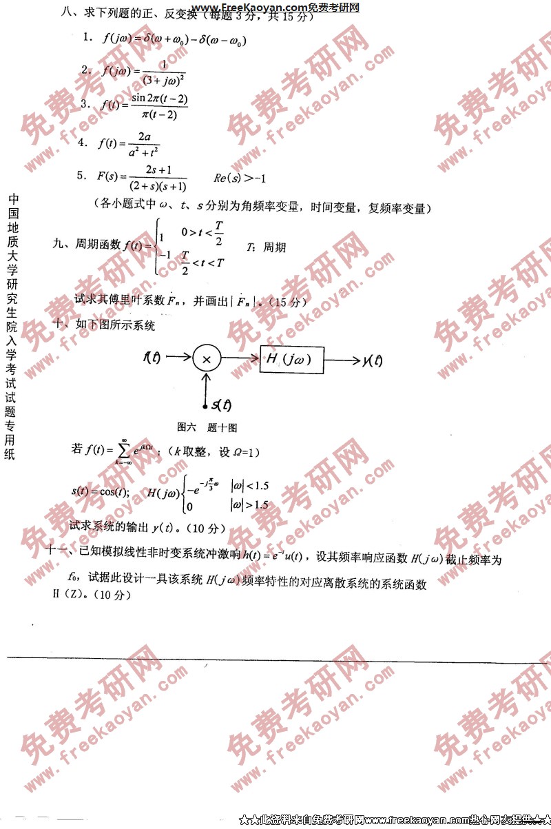 相关话题/考研真题 中国地质大学 信号与系统 电路