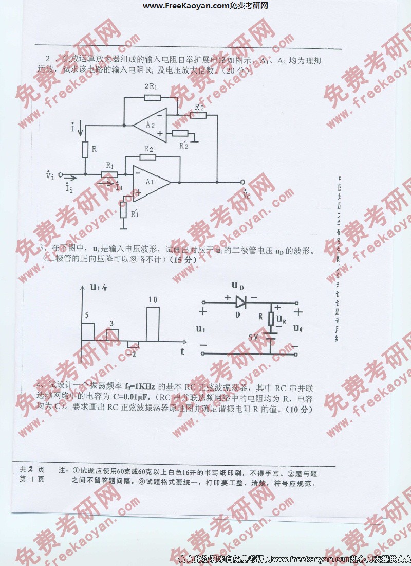 中国地质大学(武汉)2006年考研真题-电子技术基础(2)