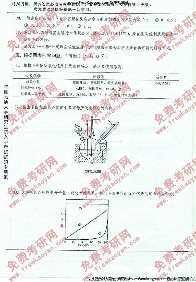 中国地质大学(武汉)2006年考研真题-高分子化学(3)