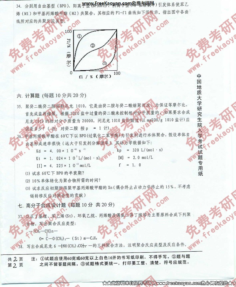 中国地质大学(武汉)2006年考研真题-高分子化学(4)