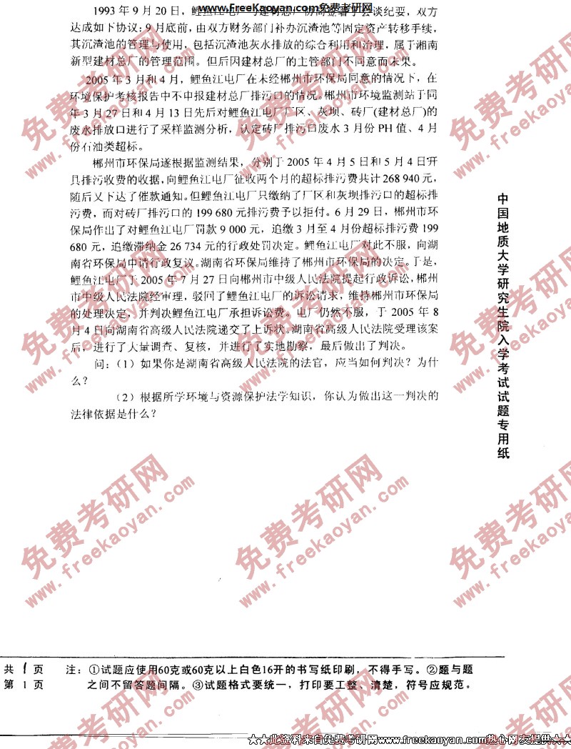相关话题/考研真题 中国地质大学 环境 法学 资源