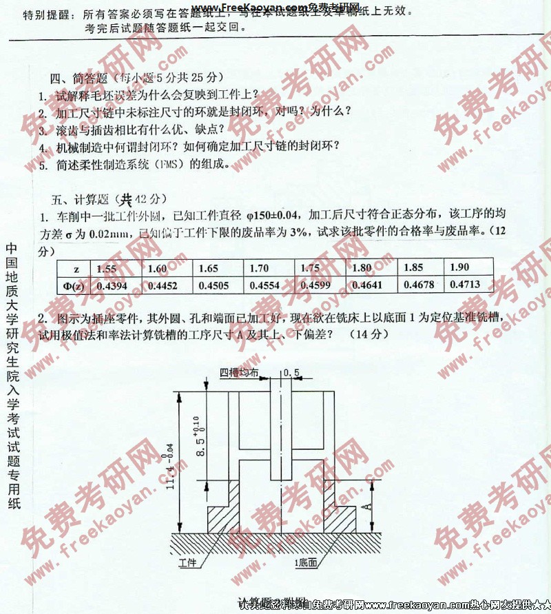 相关话题/考研真题 中国地质大学 机械 制造 工艺