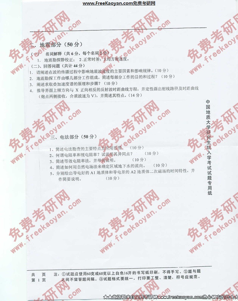 相关话题/考研真题 地球物理 中国地质大学 概论