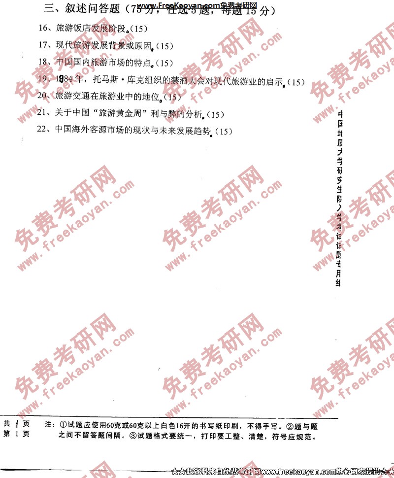 相关话题/考研真题 旅游学 中国地质大学 概论