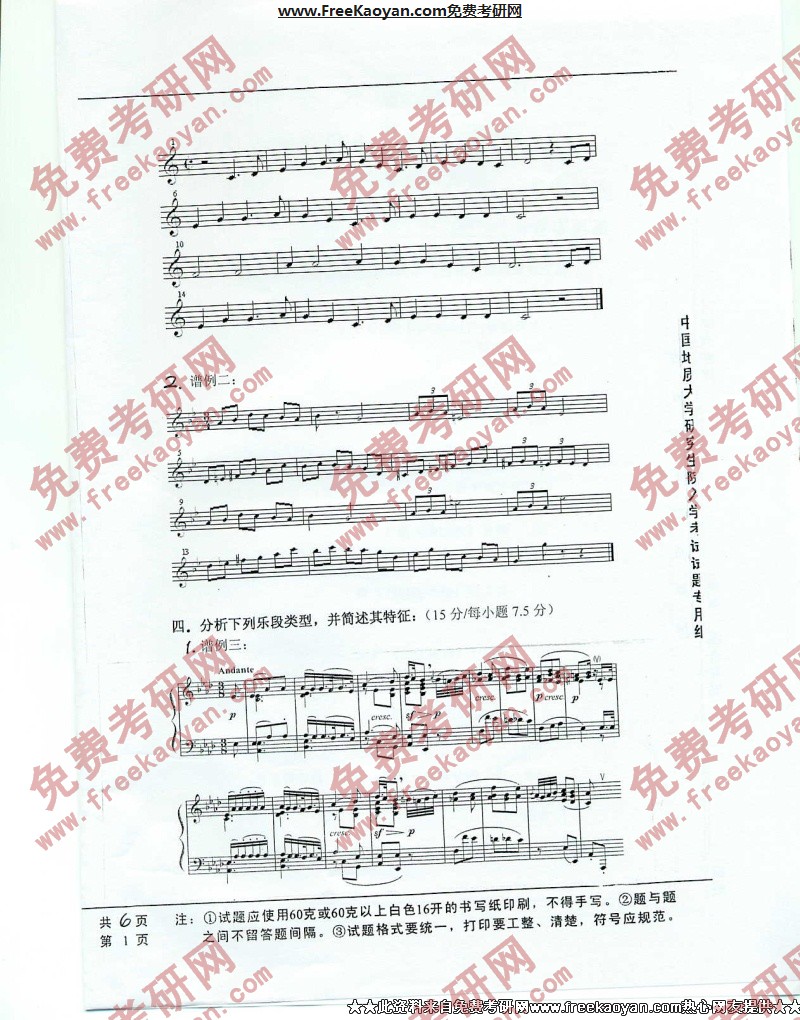 中国地质大学(武汉)2006年考研真题-曲式与作品分析(2)
