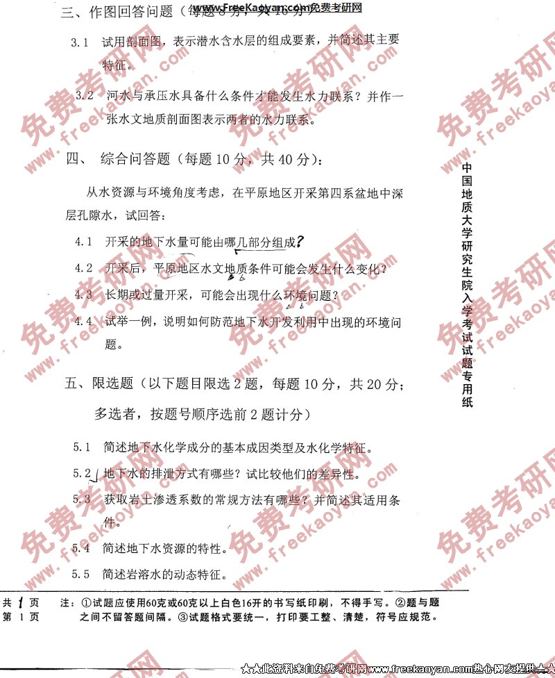 中国地质大学(武汉)2006年考研真题-水文地质学(2)