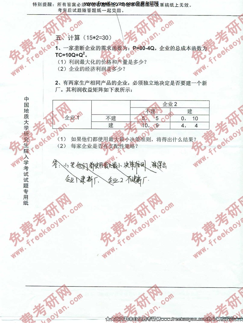 相关话题/中国地质大学 考研真题 微观经济学