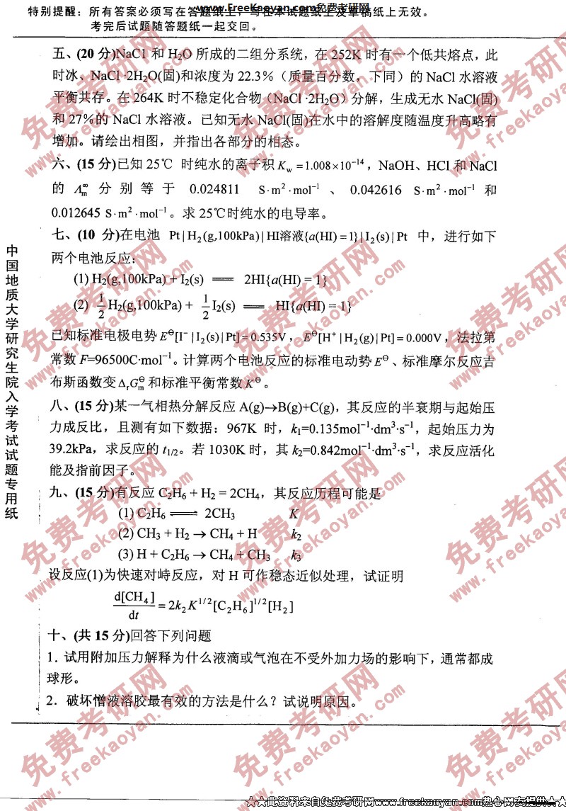 相关话题/中国地质大学 考研真题 物理化学