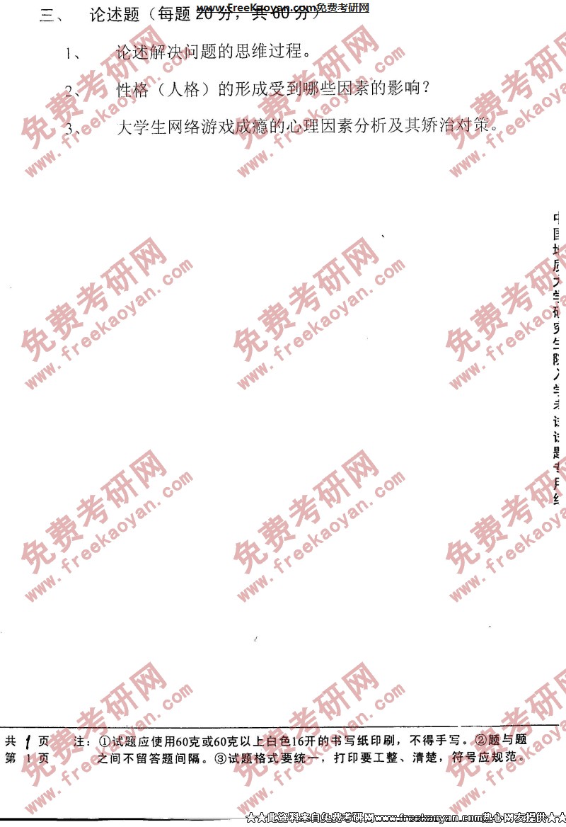 相关话题/中国地质大学 考研真题 心理学