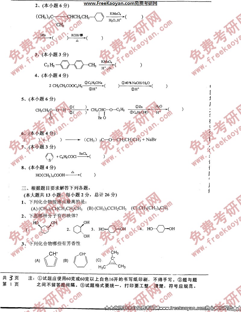 中国地质大学(武汉)2006年考研真题-有机化学(2)