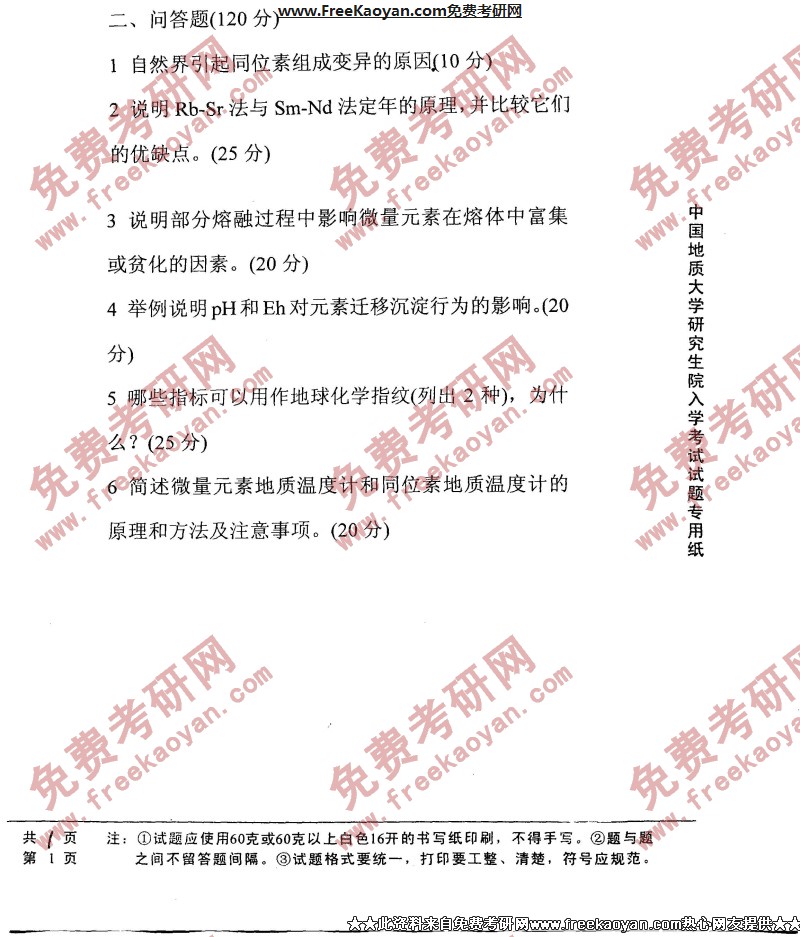 中国地质大学(武汉)2006年考研真题-地球化学(2)