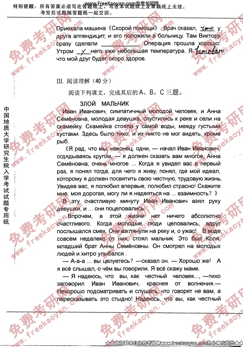 中国地质大学(武汉)2006年考研真题-俄语(二外)(3)