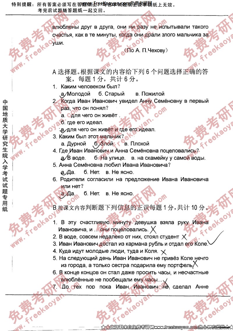 中国地质大学(武汉)2006年考研真题-俄语(二外)(5)