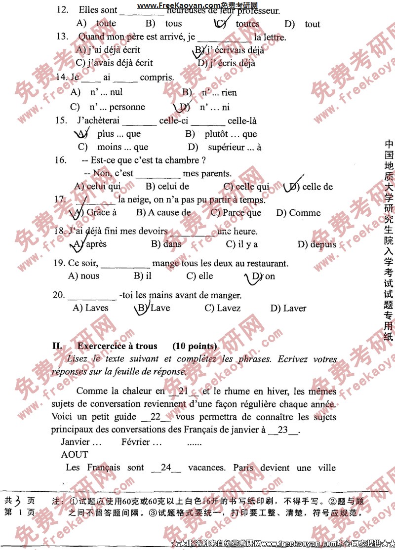 相关话题/中国地质大学 考研真题 法语