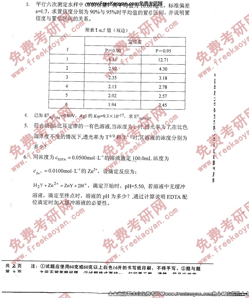 中国地质大学(武汉)2006年考研真题-分析化学(4)