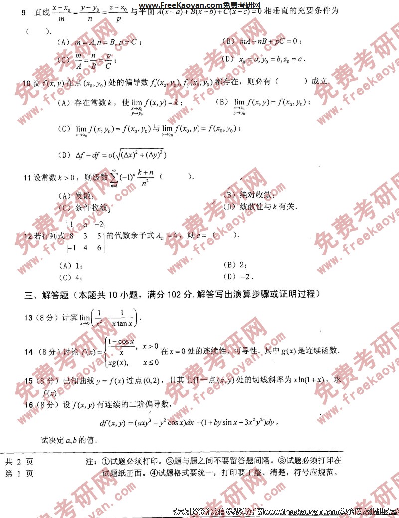 中国地质大学(武汉)2006年考研真题-高等数学(2)
