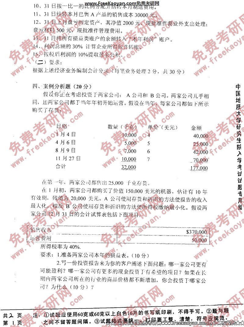 专业课考研经验 本站小编 FreeKaoyan 2018-01-23中国地质大学(武汉)2006年考研真题-沉积环境与沉积相