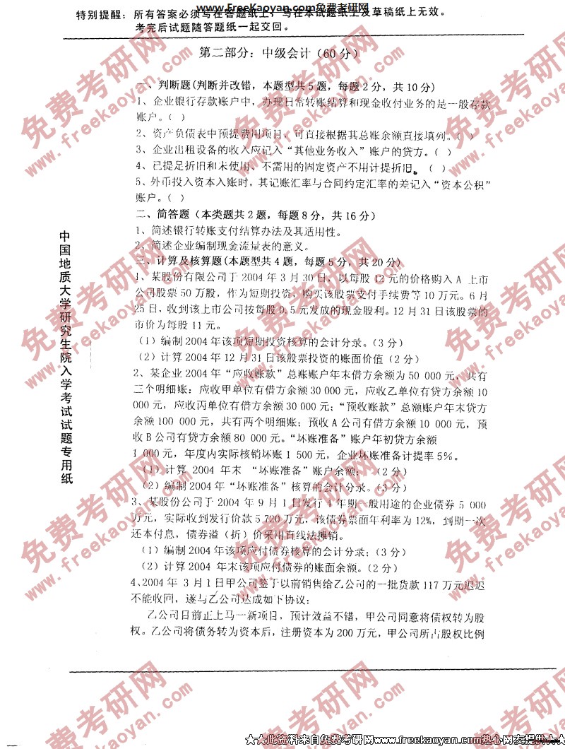 专业课考研经验 本站小编 FreeKaoyan 2018-01-23中国地质大学(武汉)2006年考研真题-分析化学